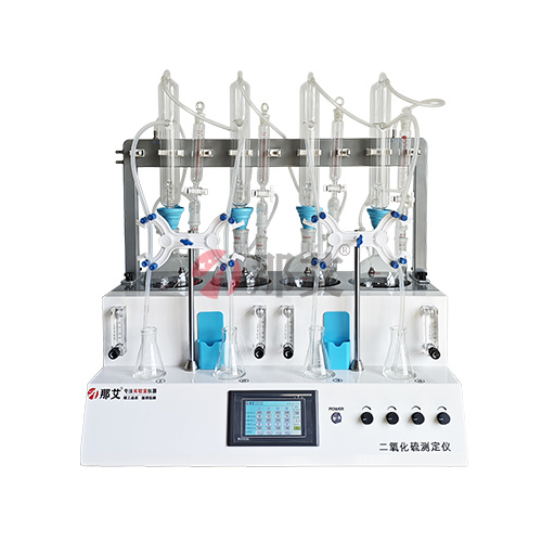 隨著GB5009.34-2022《食品中二氧化硫的測定》新國標頒布,食品中的二氧化硫和《中國藥典》中的中藥材二氧化硫測定檢測方法已完全相同。那艾在嚴格遵循國標要求的基礎上, 整合加熱,蒸餾,氮吹,加酸,攪拌以及滴定等功能為一體,還可同時操作1-6個樣品(空白樣,平行樣)的處理,從面極大的提高了檢測數(shù)據的精度和減少了工作時間。